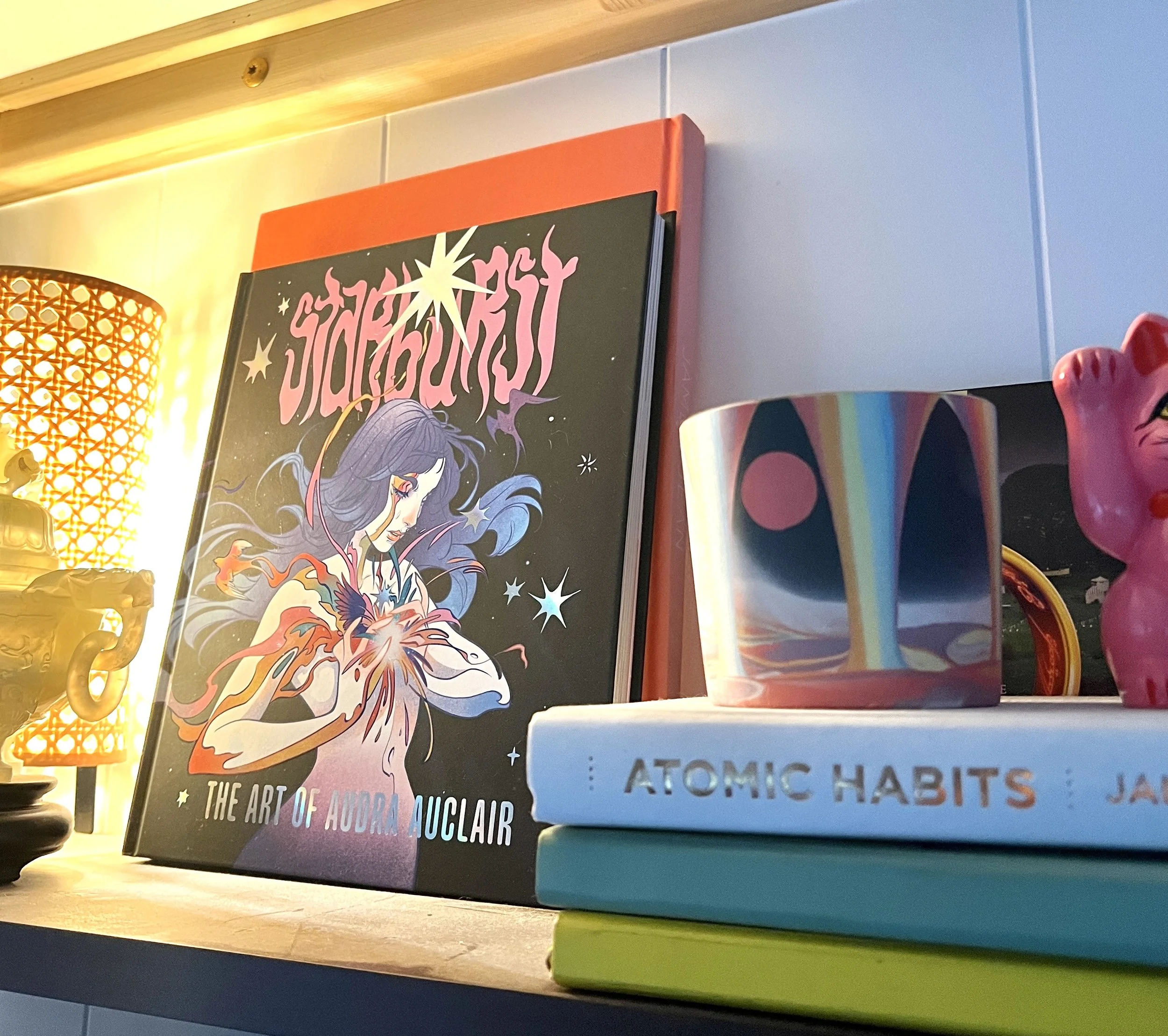 Hello, I’m Audra. I’m a Canadian artist whose work has spanned across many mediums. My work has been exhibited internationally in a variety of formats. My creative endeavours consist of exploring a multitude of subjects as well as attempting to express the complexities of human emotion. I enjoy blending fantastical elements and bright colours usually via painting. In my personal life, I love swimming, playing cosy games, ingesting sushi, travelling and taking photos of mushrooms in the local rainforests.